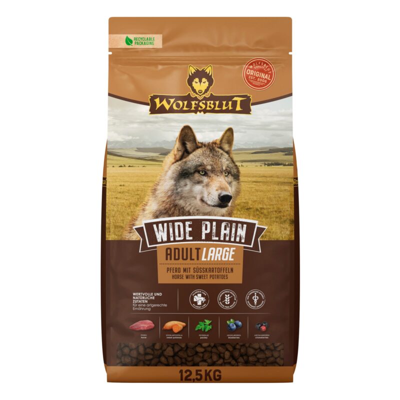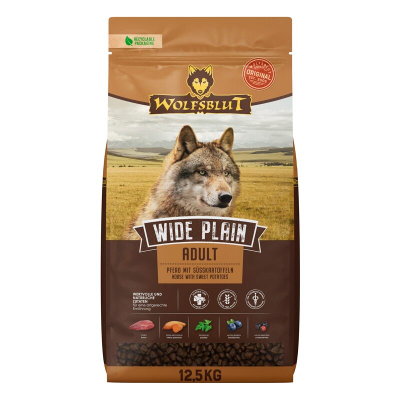 Nasze karmy WIDE PLAIN powstają z dużej ilości świeżej i suszonej koniny w połączeniu z wartościowymi superfoods i ziołami. Składniki zostały dobrane we współpracy z lekarzami weterynarii, aby jak najlepiej odwzorować naturalną dietę wilka i wykorzystać najnowszą wiedzę o żywieniu holistycznym.